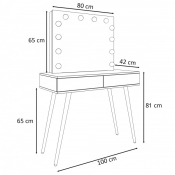 įspūdingas veidrodis su 12 lempučių, kurios kasdienės priežiūros metu puikiai apšviečia veidą ir suteikia ryškų, tolygų apšvietimą;